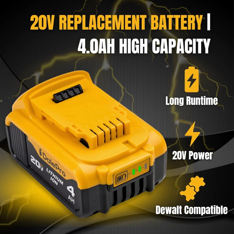 • [Specification] Replacement batteries 20V compatible with Dewalt | 4.0Ah/4000mAh Li-ion | Built with high-quality battery cells for maximum performance | Comes in a for extended power supply | Fully compatible batteries 20V tools.